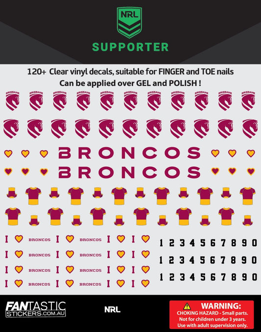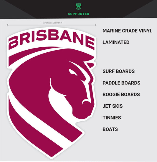 A range of stickers, decals, signs, banners, flags, wraps products for the NRL club team Brisbane Broncos.