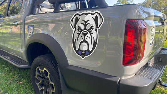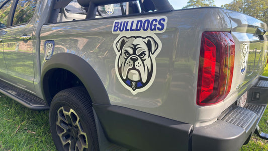 A range of stickers, decals, signs, banners, flags, wraps products for the NRL club team Canterbury-Bankstown Bulldogs.