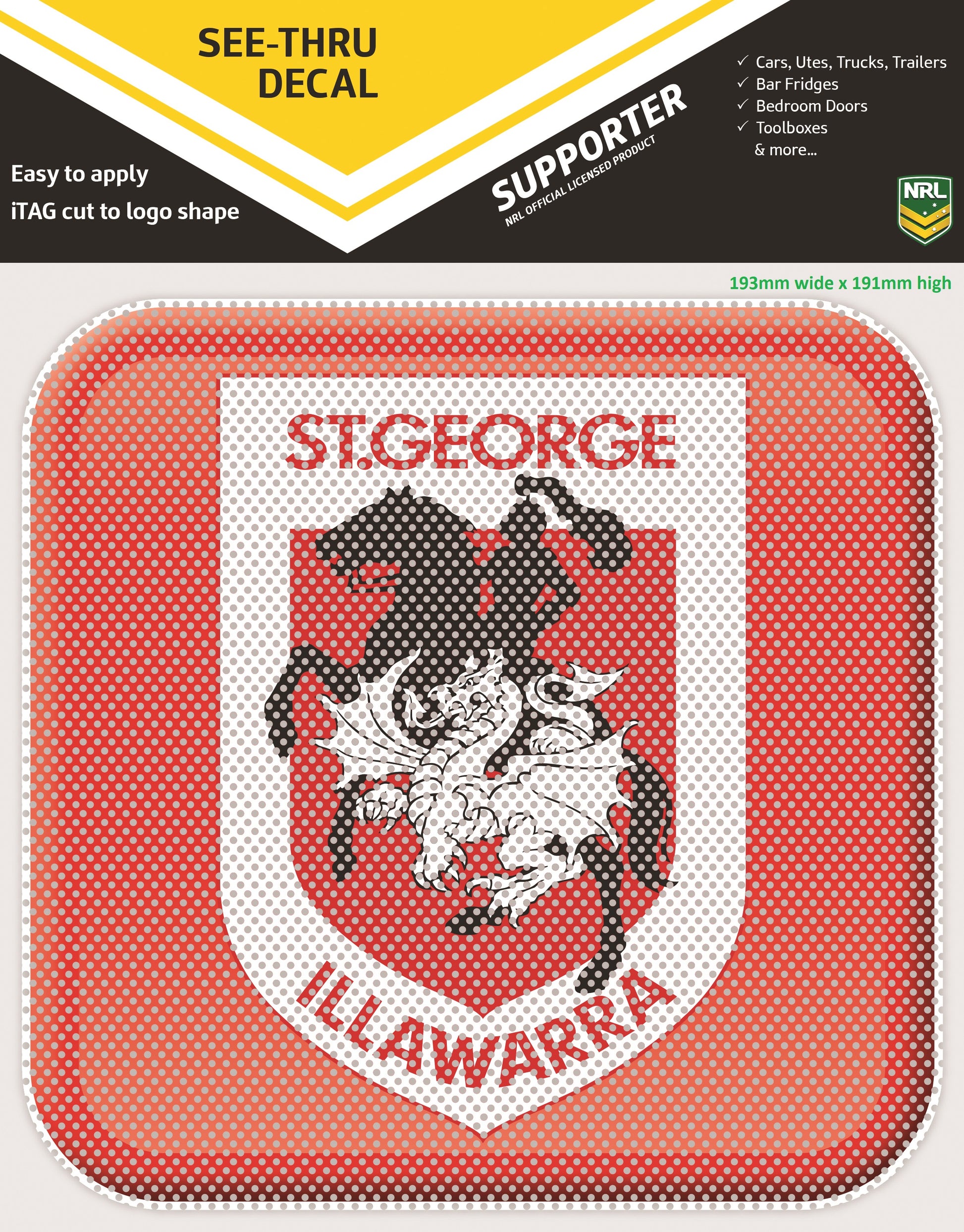 The App Icon See-Thru Decal is an awesome sticker which is printed onto special perforated film called One Way Vision. The image has been designed to look like a smart phone app icon of the club logo and is great for every colour vehicle and smooth surface (excluding rubber, silicon and some plastics). It has an amazing minimum 1 year guaranteed fade resistance.
