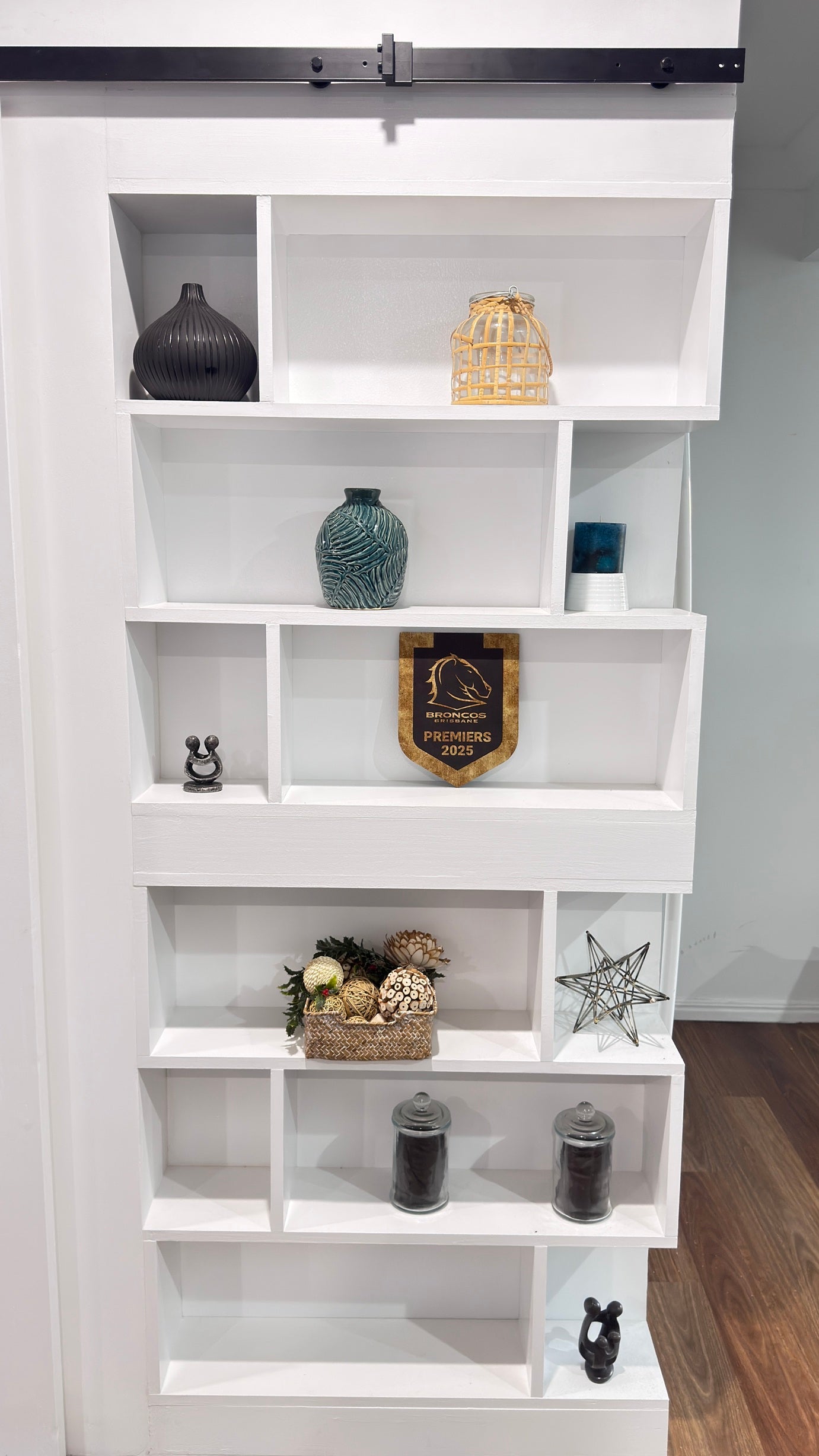 The great benefit of the NRL 2025 Premiers Shield / Plaque is that it can be put on virtually any surface. Such as walls, doors, windows, tables, shelf, bookcase. It is made from very lightweight 5mm rigid foamboard and rustic gold vinyl. It comes with a strip of rental safe double-sided adhesive tape, now you can put it wherever you want safely and not damage paint.