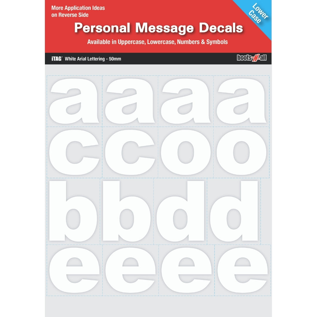 Personalised Message Decals come in three different packages, Lowercase letters, Uppercase letters and Numbers and Symbols.