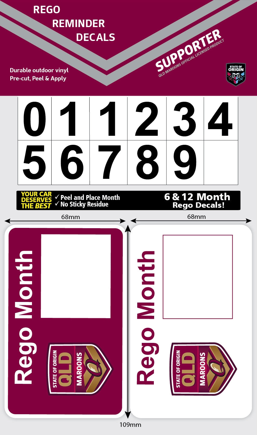 Queensland Maroons Rego Reminder Decals (set of 2) (2015)