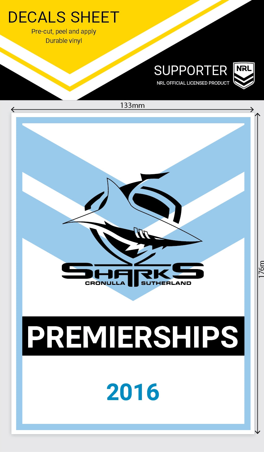 The Premiership Years Decal has the club logo and team coloured chevrons along with a list of every year the team has won a premiership. This decal has a minimum 1 year guaranteed fade resistance.