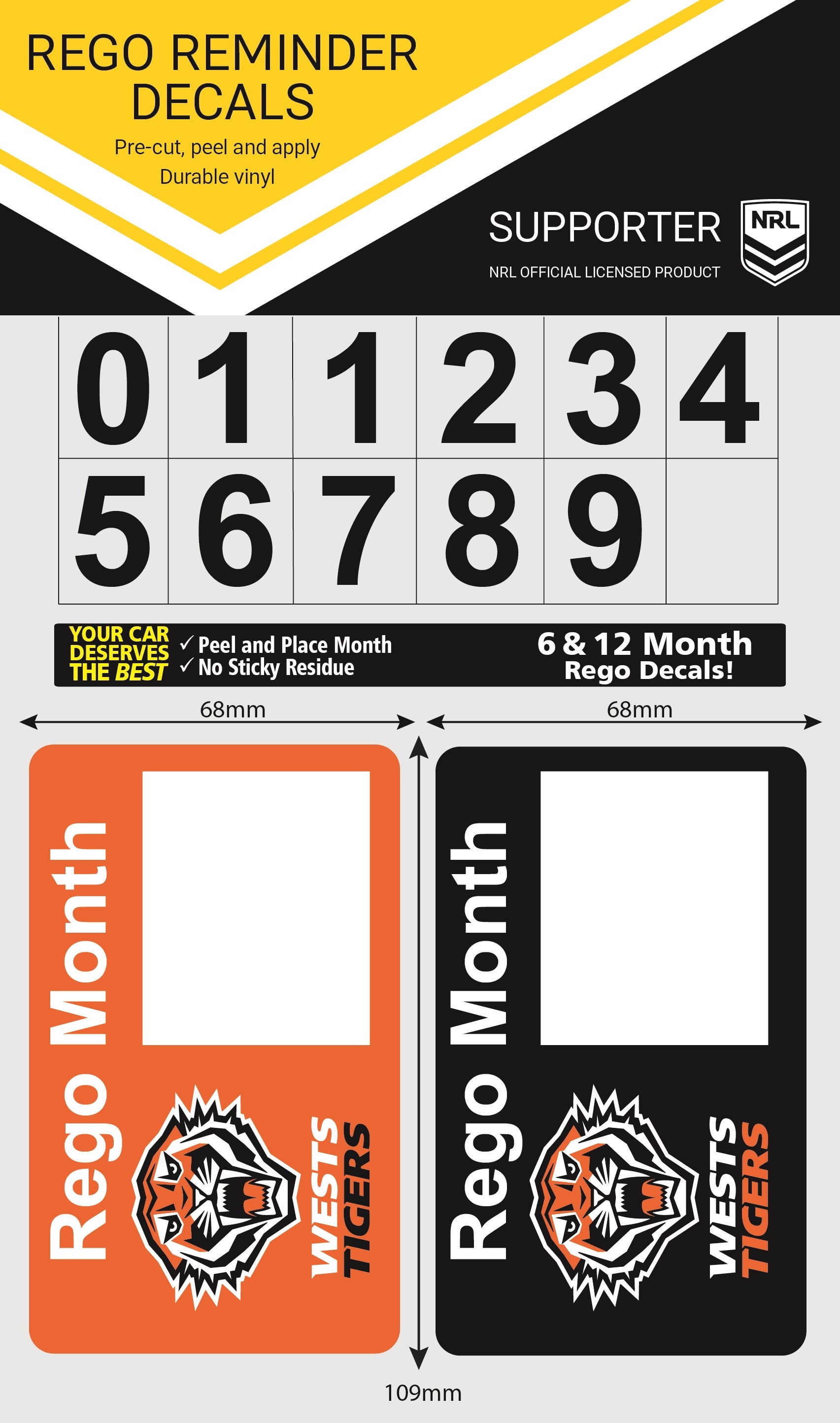 Wests Tigers Rego Reminder Decals (2021)